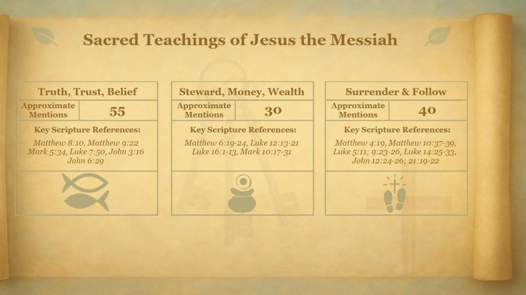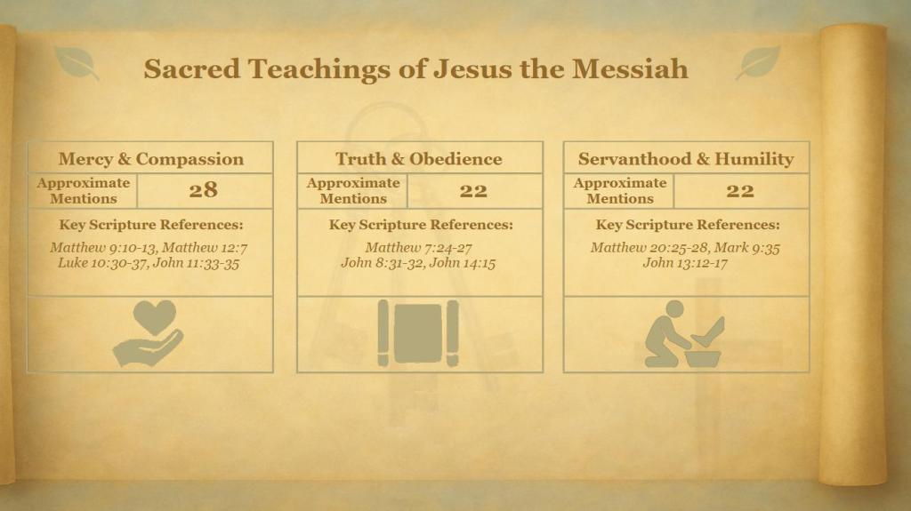 Welcome to the Sacred Canvas of Jesus’ Teachings—a thematic unveiling of the truths our Messiah taught, repeated, and revealed during His earthly ministry.